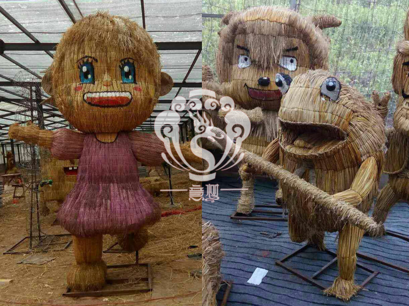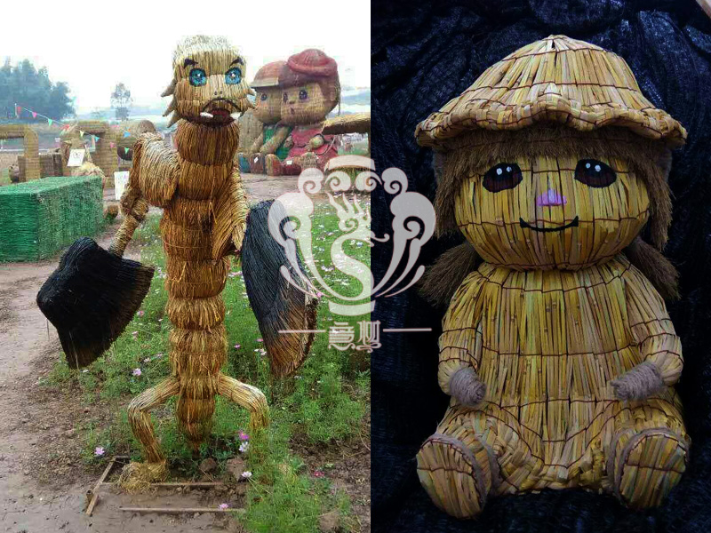 稻草人藝術(shù),不僅充分利用的稻草秸稈制作出各種有趣的形象,與此同時還能減少秸稈的焚燒,為我們的藍(lán)天白云,子孫后代做一份貢獻(xiàn)!現(xiàn)在的精致稻草人藝術(shù)通常是由專業(yè)美術(shù)老師的造型放樣,然后由焊工師傅焊接出立體造型造型,然后以稻草或者稻草繩為材料編捆制作而成。