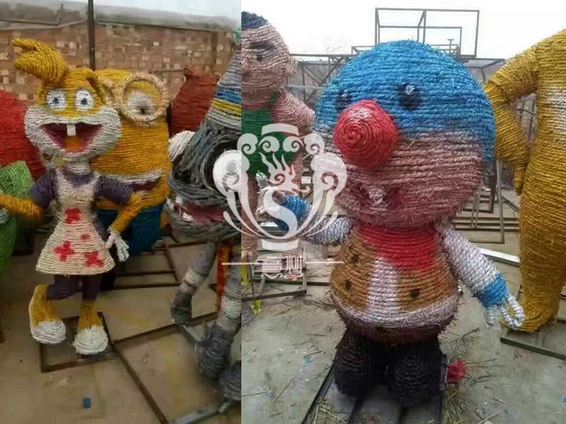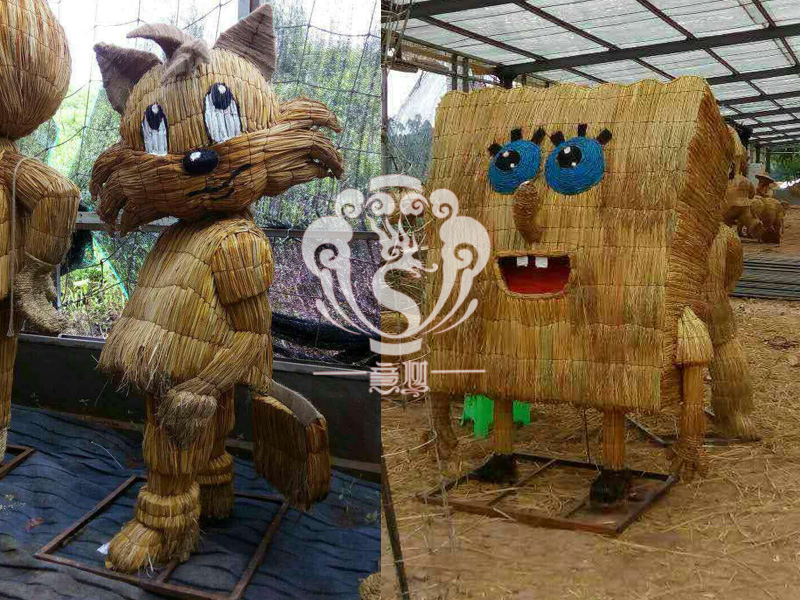 稻草人藝術,不僅充分利用的稻草秸稈制作出各種有趣的形象,與此同時還能減少秸稈的焚燒,為我們的藍天白云,子孫后代做一份貢獻!現在的精致稻草人藝術通常是由專業美術老師的造型放樣,然后由焊工師傅焊接出立體造型造型,然后以稻草或者稻草繩為材料編捆制作而成。
