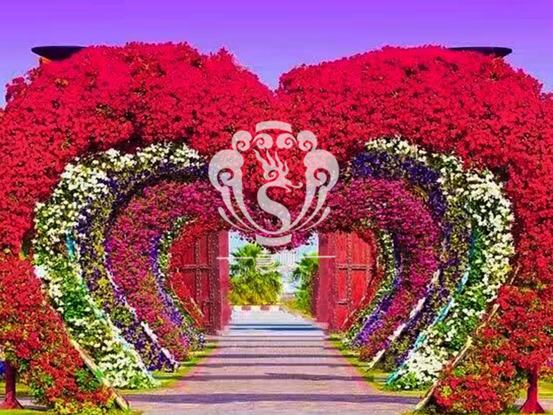 絹花造型是通過藝術形象可反映一定的社會時代精神,具有一定的思想內容,既可點綴園景,又可成為園林某一局部甚至全園的構圖中心;而且可以叫你在可能的環境里看到不可能出現的植物。