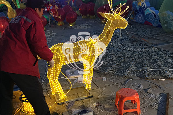 自貢意樹文化傳播公司此次為深入了解鹿知識鹿文化,由設(shè)計(jì)總監(jiān)帶隊(duì)趕赴北京鹿世界主題公園實(shí)地參觀了游客、飼養(yǎng)員與鹿的互動、周邊農(nóng)副產(chǎn)品。我公司于4月8日派遣80名技藝精湛的彩燈制作工人經(jīng)過15個日夜趕工,終于如期在4月24日為北京市民呈現(xiàn)了這場“最美”夢幻燈光嘉年華。