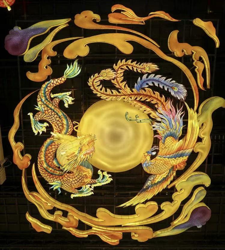 自貢彩燈素有 “天下第一燈” 美譽,其工藝歷經千年淬煉,從漢代井鹽開采時期的雛形,到明清 “獅燈場市” 的興盛,如今已發展出立體絲扎、分色裱糊、瓷器捆扎等數十種核心技法。意樹文化團隊深諳此道,在創作中既堅守 “美工放樣、鉗工造型、焊工固定、裱糊上色” 的傳統工序,又融入 LED 節能光源、AI 互動等現代科技,更創新性運用特色材料,讓每盞花燈都成為技藝傳承的載體。如工匠們將以 45 度角精準裁切按紋理緊密粘制成孔雀翎羽,燈光透過的天然紋路,盡顯生靈的靈動質感。