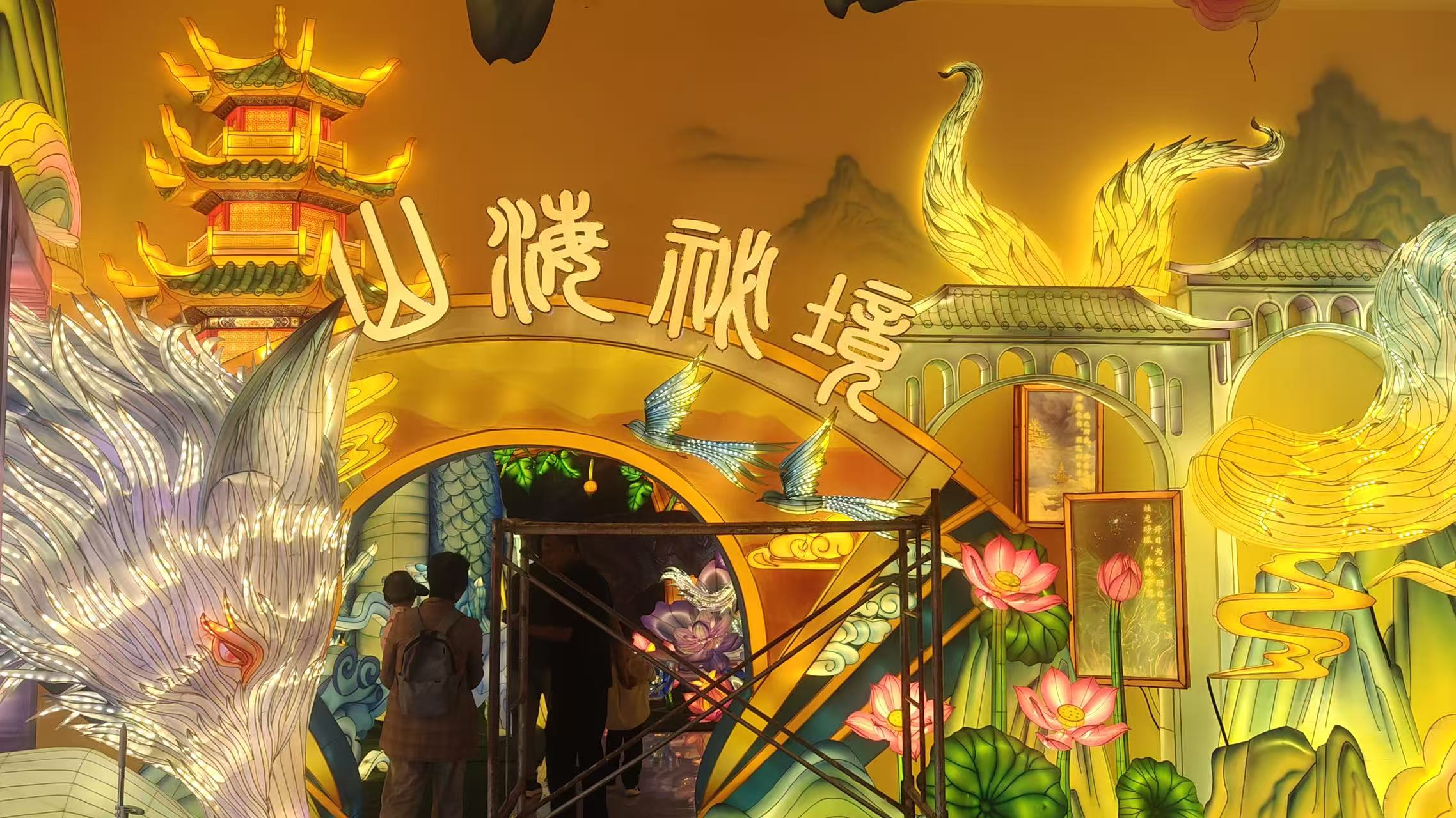 作為國內目前規模最大的花燈展廳,意樹文化團隊以 “還原上古宇宙” 為目標,打造出涵蓋三大主題展區的燈影秘境。從前期研讀《山海經》《淮南子》等典籍繪制百張設計圖,到組織 60 余名工匠歷時 3 個月手工制作,團隊始終堅守嚴苛標準:焊工需保證每處骨架接口誤差不超 1 毫米,裱糊工為呈現神明衣袂飄逸感,需徒手拉伸絹布至精準張力,美工則參照出土文物紋樣復原上古圖騰。