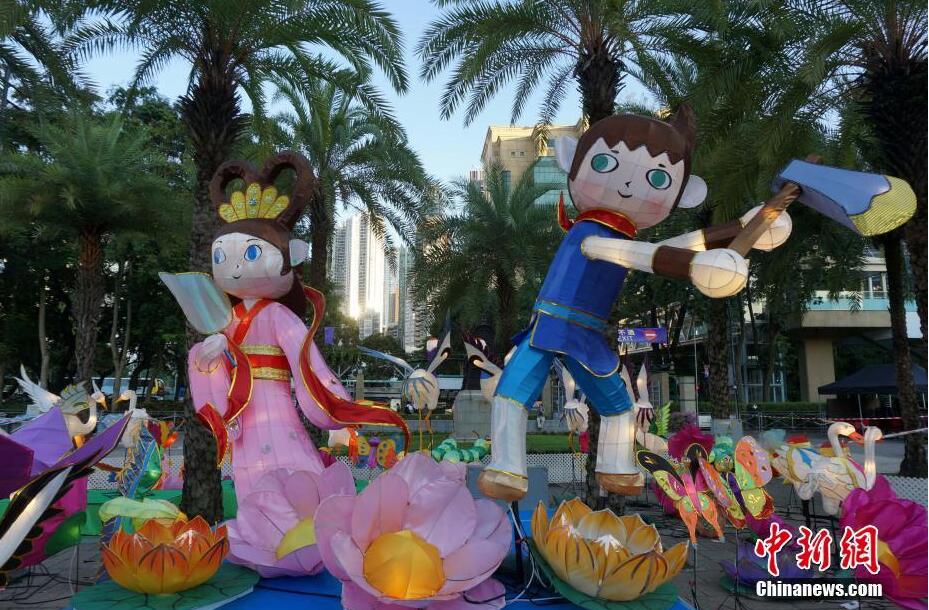 9月28日,維園中秋節(jié)彩燈“嫦娥與吳剛”。中秋節(jié)期間香港康文署將分別在維多利亞公園、沙田公園及青衣公園舉辦彩燈會。維園彩燈會將擺置兩組光影裝置作品“團.圓”及“尋月”,以及主題彩燈組“漫游星月夜”,展現(xiàn)在中秋月夜相逢相聚的不同故事。