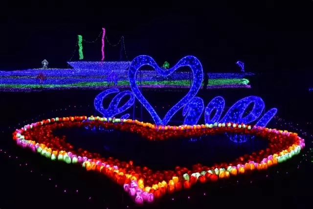 本次夢幻燈光秀以燈光科技文化為主線,分為愛國情愫、時光隧道、水中盛景、愛心通道、求婚LOVE五大板塊,設置了20多個燈組、50多個造型,通過LED霓虹燈飾與鋼架模型編成各種造型,以逼真的燈光造型、豐富的燈光種類、生動的場景再現、細致的燈光布置為特點,將燈光文化與前沿科技欣賞結合,讓市民在游玩中得到美感的體驗。