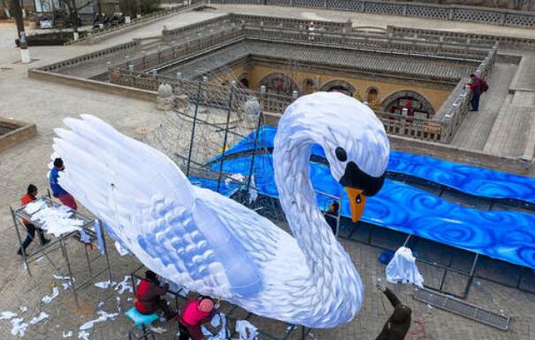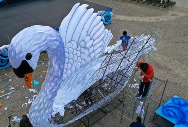 初具雛形大型白天鵝花燈