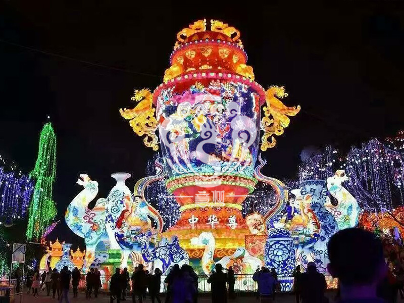 進入漢代后,是銅燈制作的鼎盛時期。《西京雜記》載:“漢高祖入咸陽宮,秦有青玉五枝燈,高七尺五寸,下作蟠螭,口銜燈,燃則鱗甲皆動,煥炳列星盈盈。”又記:“長安巧工丁緩,作恒滿燈,九龍五鳳,雜以芙蓉蓮藕之奇。”河北滿城西漢中山靖王妻竇綰墓中出土的“長信宮燈”,塑造出一個優美的仕女形象,左手托燈,右手提燈罩,以手袖為虹管,處理得十分自然。燈體成圓形,有兩塊半圓形的罩板,可以任意調節光照的方向,既適應實用的要求,也符合科學的原理,即可作燈又可作為觀賞的陳設品。這種實用與美觀的統一,正體現了卓越的設計匠心和藝術構思。由此可見,早在燈節風俗出現之前就有了古代花燈光源的油燭生產技術,有了花燈造型的制作工藝,有了花燈藝術的能工巧匠。日后“漢家以望日祀太一,以昏時到期,今夜游觀燈”,形成了中國民族兩千多年的傳統習俗。花燈藝術在這種習俗的社會條件下得以不斷演進、發展。